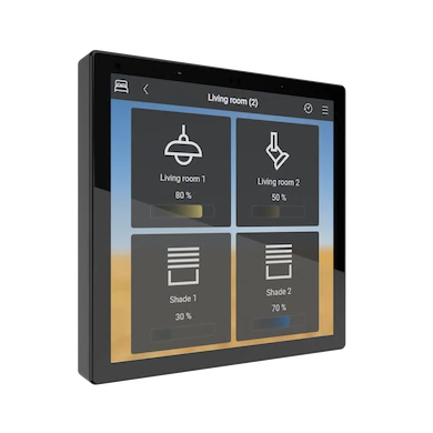 Minimalističen 4-palčni zaslon omogoča intuitivno upravljanje razsvetljave, senčil, ogrevanja, hlajenja, varnosti in multimedije na enem mestu. S pomočjo platforme ComfortClick se različni sistemi združijo v enoten, pregleden in uporabniku prijazen vmesnik.